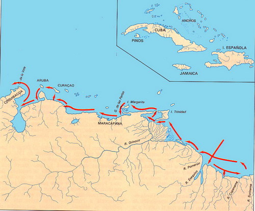 реки Ориноко, берег Гвианы, остров Кюрасао и бухту Венесуэлы